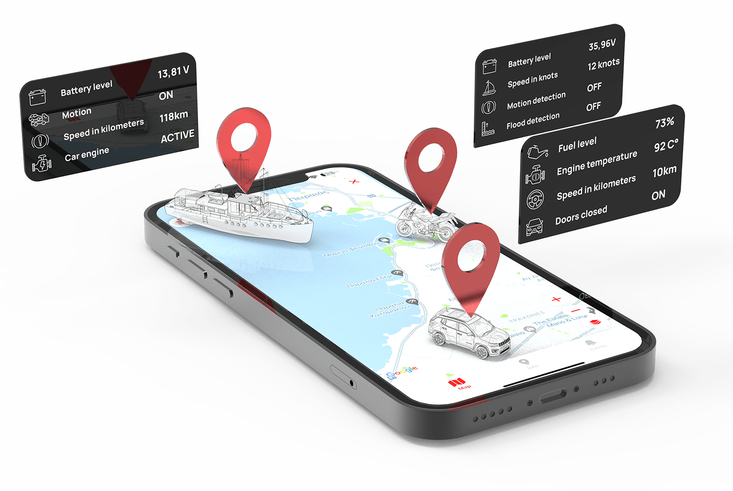 Τοποθετούμε μία συσκευή τηλεματικής (gps tracker) στο όχημα, η οποία ενημερώνει συνεχώς τη πλατφόρμα διαχείρισης με δεδομένα όπως τοποθεσία οχήματος, ταχύτητα, στάσεις, ρυμούλκηση, στάθμη μπαταρίας, κατάσταση κινητήρα, στάθμη καυσίμου, θερμοκρασία κινητήρα, μετακίνηση (αναλόγως της συσκευής που θα επιλεχθεί). Μέσω του υπολογιστή σας ή των εφαρμογών για Android & iOS είστε διαρκώς σε επικοινωνία με τη πλατφόρμα διαχείρισης οπότε ενημερώνεστε για οποιαδήποτε αλλαγή κατάστασης από τα παραπάνω.